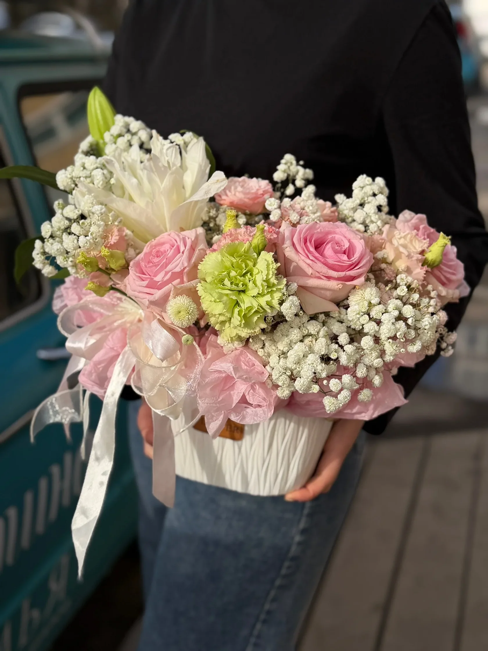 Шикарная корзина из французской розы! Несомненно произведет ВАУ впечатление!